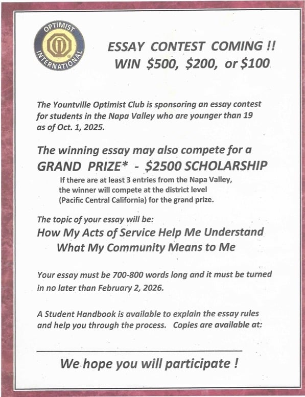 Scholarships are available to everyone eligible. Interested parties should email us at yvilleoptimist@gmail.com.